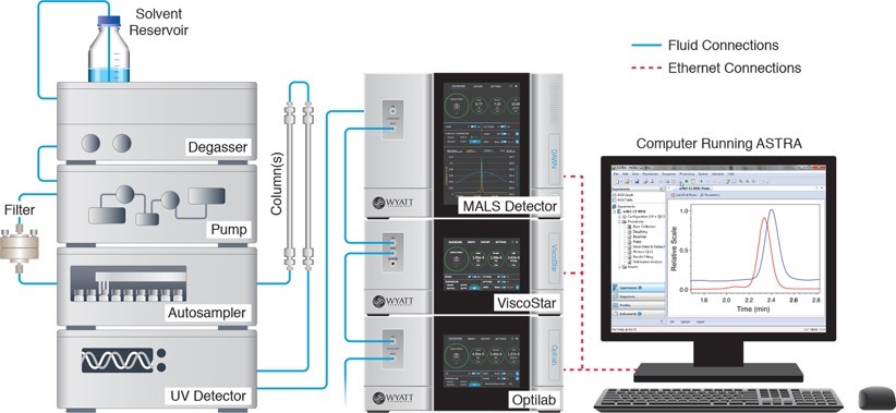 After you connect your Wyatt instruments to your chromatography system, make sure to run an appropriate standard to determine the alignment and band broadening parameters and enter these into your ASTRA methods.