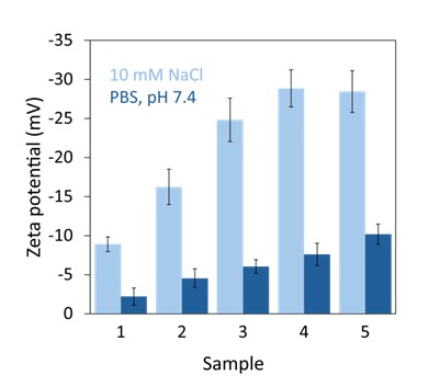 - Charge via zeta potential